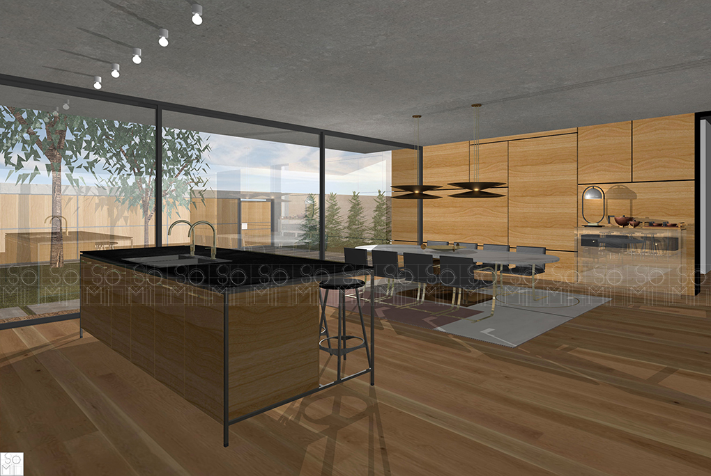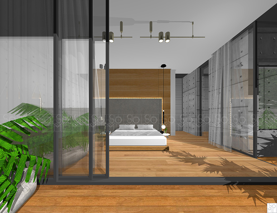 Borrowing elements from the golden era of architecture and interior design and contemporary aesthetics this residence is the epitome of fine taste. The home’s communal spaces and private spaces are two separate structures connected via a contemporary glass gallery corridor. The concept of bringing the outside inside is further carried into the interior design with double-face wood cladding on the exterior.