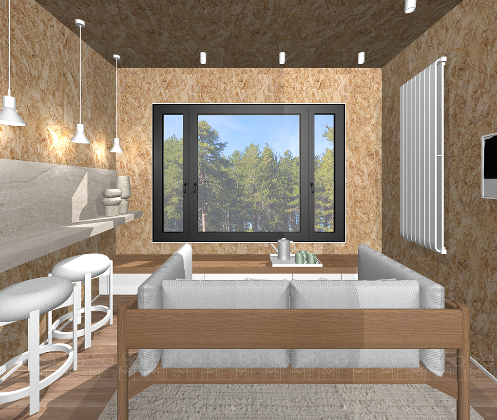 Designed as a minimalist space to escape the urban environment’s visual and audio cacophony. The space becomes a mountainside cocoon or envelope creating an intimate and private space. The structure terminates in a picture frame opening that looks out into the beautiful, densely forested Troodos mountains. This building is designed to be minimally intrusive to the environment by using light weight materials, having a small footprint, being low cost and low energy to implement.