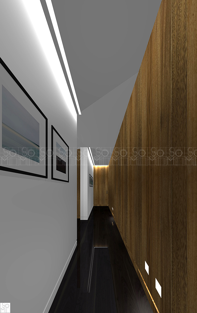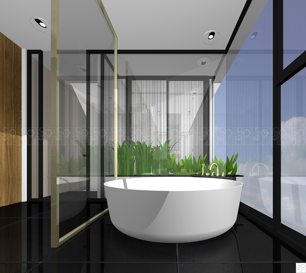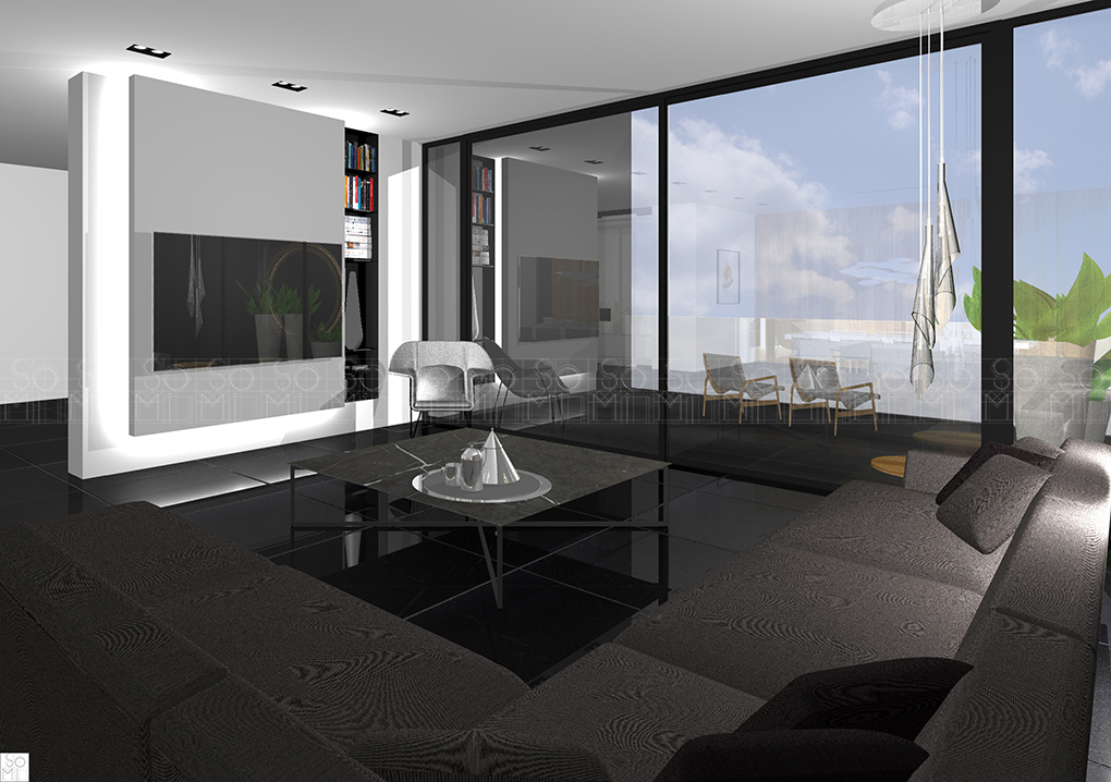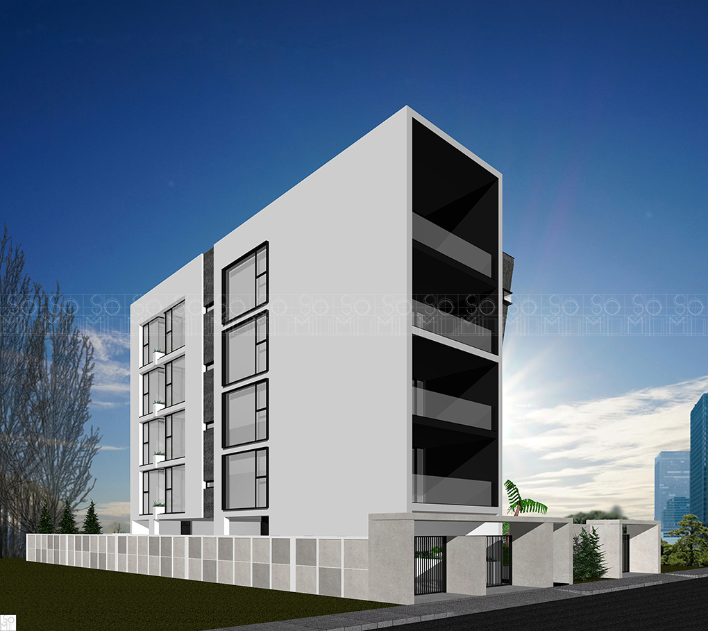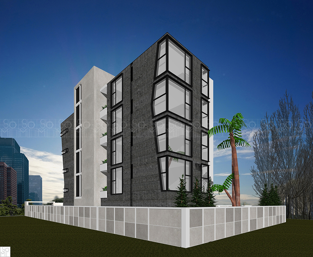 A four-floor, four-unit building, with a focus on openness. Multiple windows bring natural light into the spaces and the external spaces are designed to feature rich foliage. These elements combine to minimize the feeling of apartment living, giving the impression of a much larger space, increasing property value, and attractiveness to prospective clients.